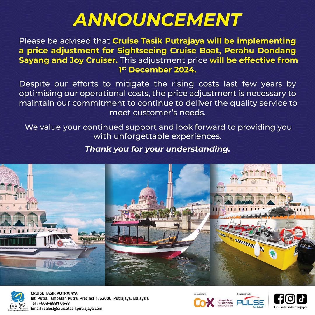 Phone: +(603) 8881 0648 Hotline: +(601) 6348 4100 Email: sales@cruisetasikputrajaya.com